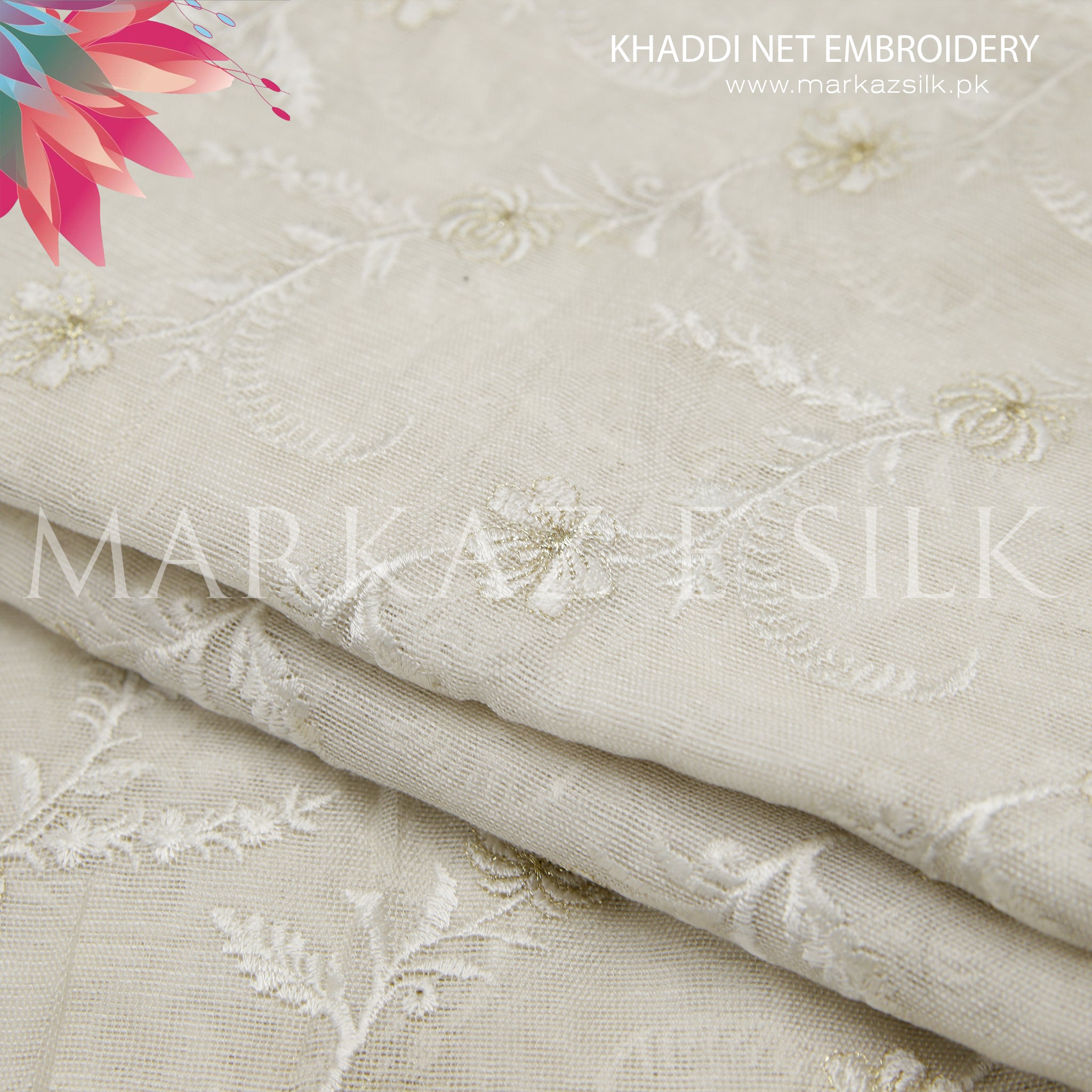 Discover the elegant charm of our Premium Khaddi Net Embroidery Fabric – MS-655, available per yard for custom tailoring and creative fashion projects. This beautifully textured Khaddi net embroidered fabric is designed to elevate your garments with a refined and graceful finish. Perfect for formal wear, festive outfits, party wear, and designer creations, this net fabric is ideal for dresses, overlays, dupattas, and custom stitched pieces.