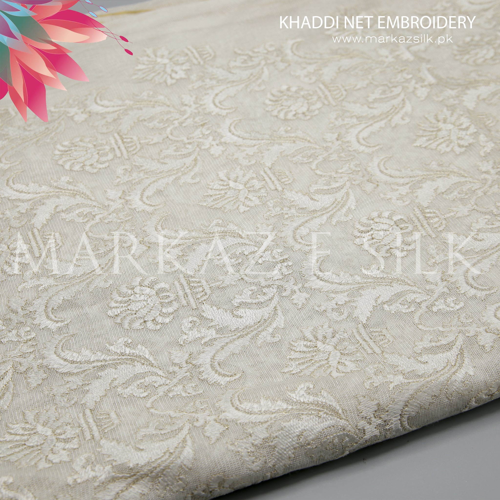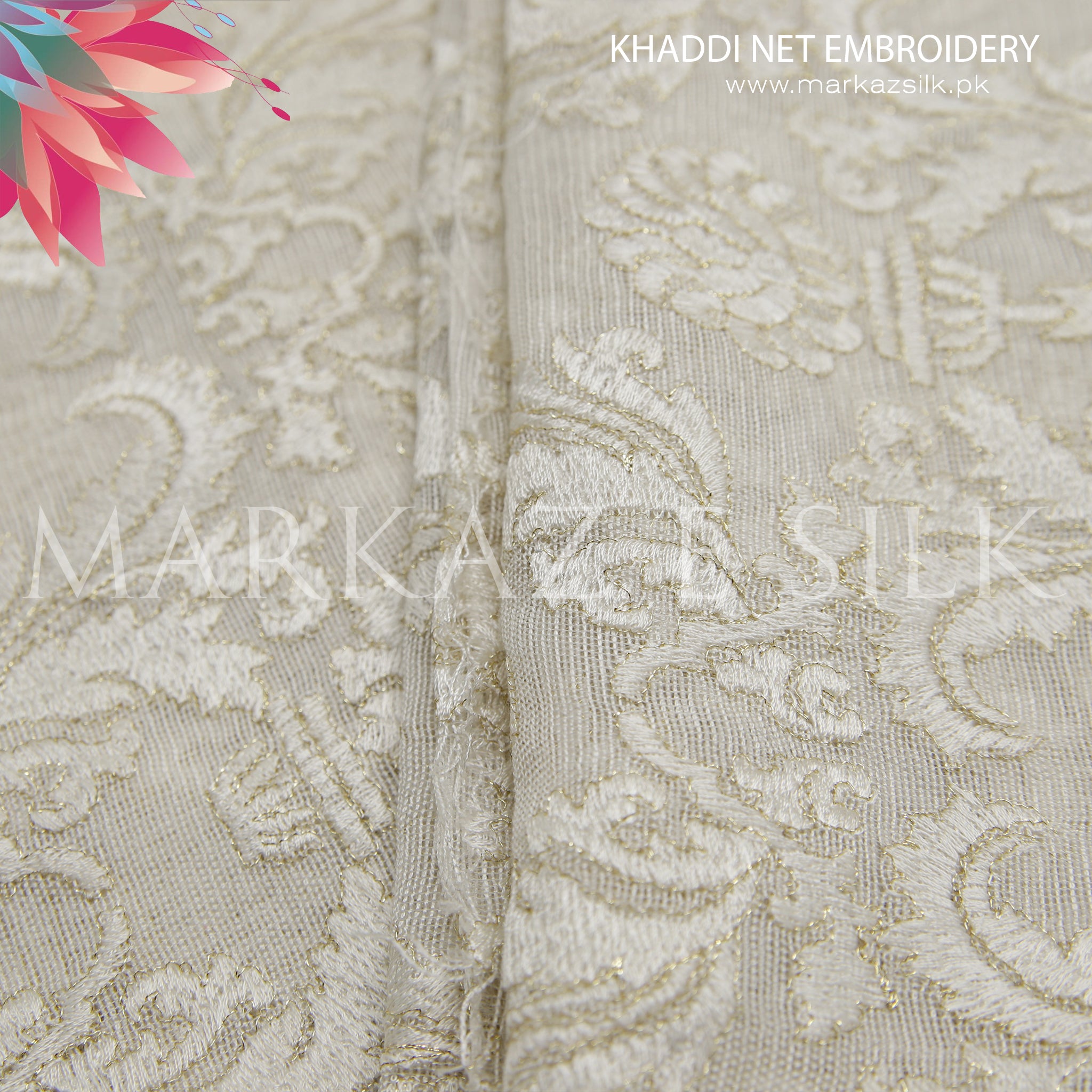 Premium Khaddi Net Embroidery Fabric MS-658 – Price Per Yard | Markaz Silk