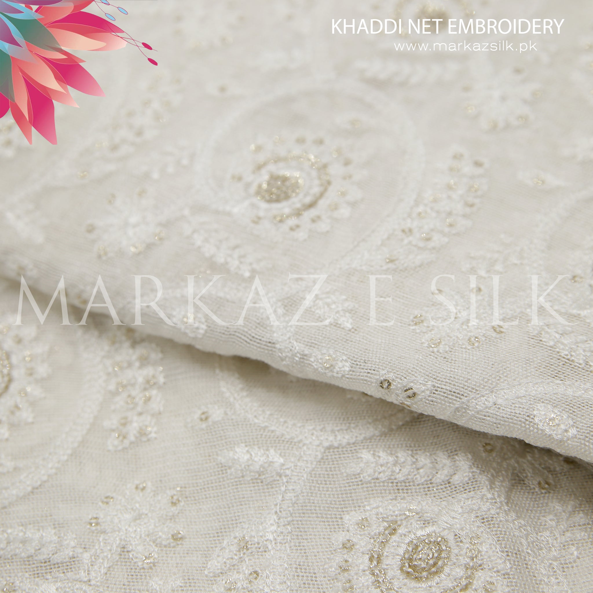 Discover the elegant charm of our Premium Khaddi Net Embroidery Fabric – MS-661, available per yard for custom tailoring and creative fashion projects. This beautifully textured Khaddi net embroidered fabric is designed to elevate your garments with a refined and graceful finish. Perfect for formal wear, festive outfits, party wear, and designer creations, this net fabric is ideal for dresses, overlays, dupattas, and custom stitched pieces.