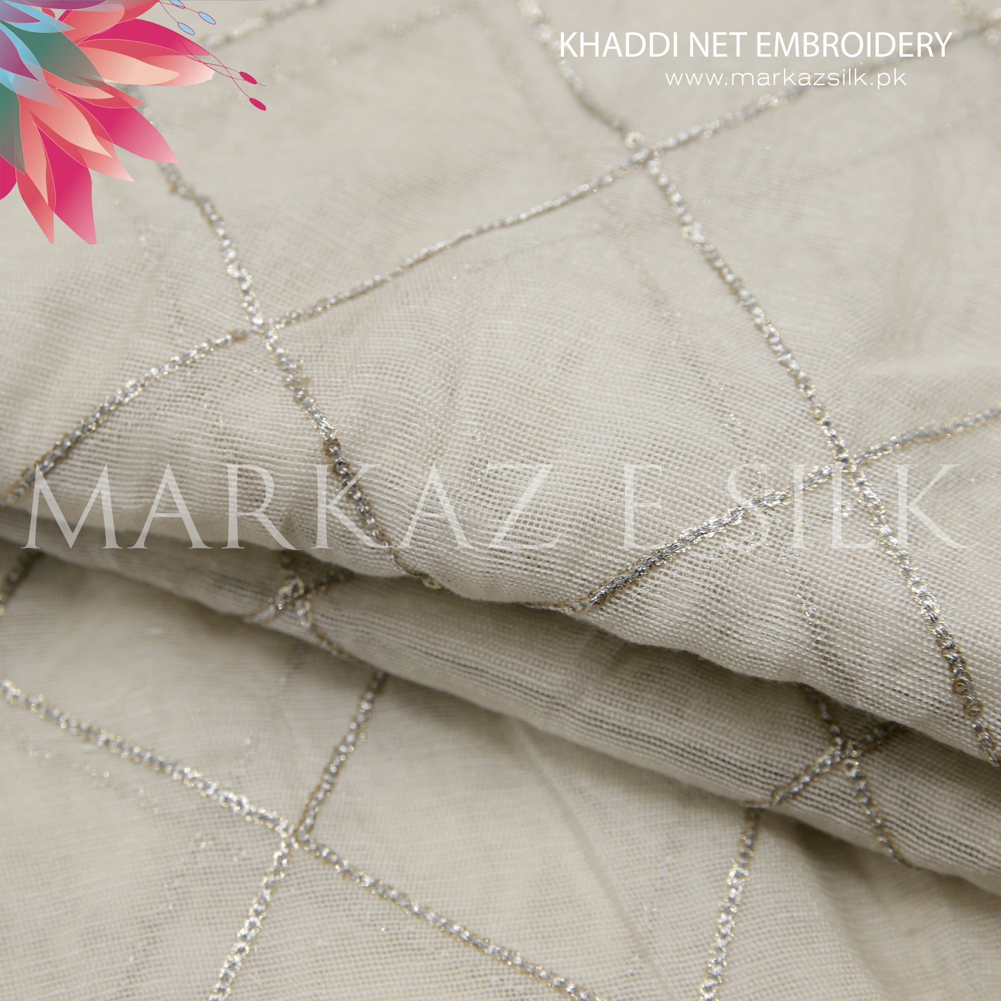 Discover the elegant charm of our Premium Khaddi Net Embroidery Fabric – MS-663, available per yard for custom tailoring and creative fashion projects. This beautifully textured Khaddi net embroidered fabric is designed to elevate your garments with a refined and graceful finish. Perfect for formal wear, festive outfits, party wear, and designer creations, this net fabric is ideal for dresses, overlays, dupattas, and custom stitched pieces.