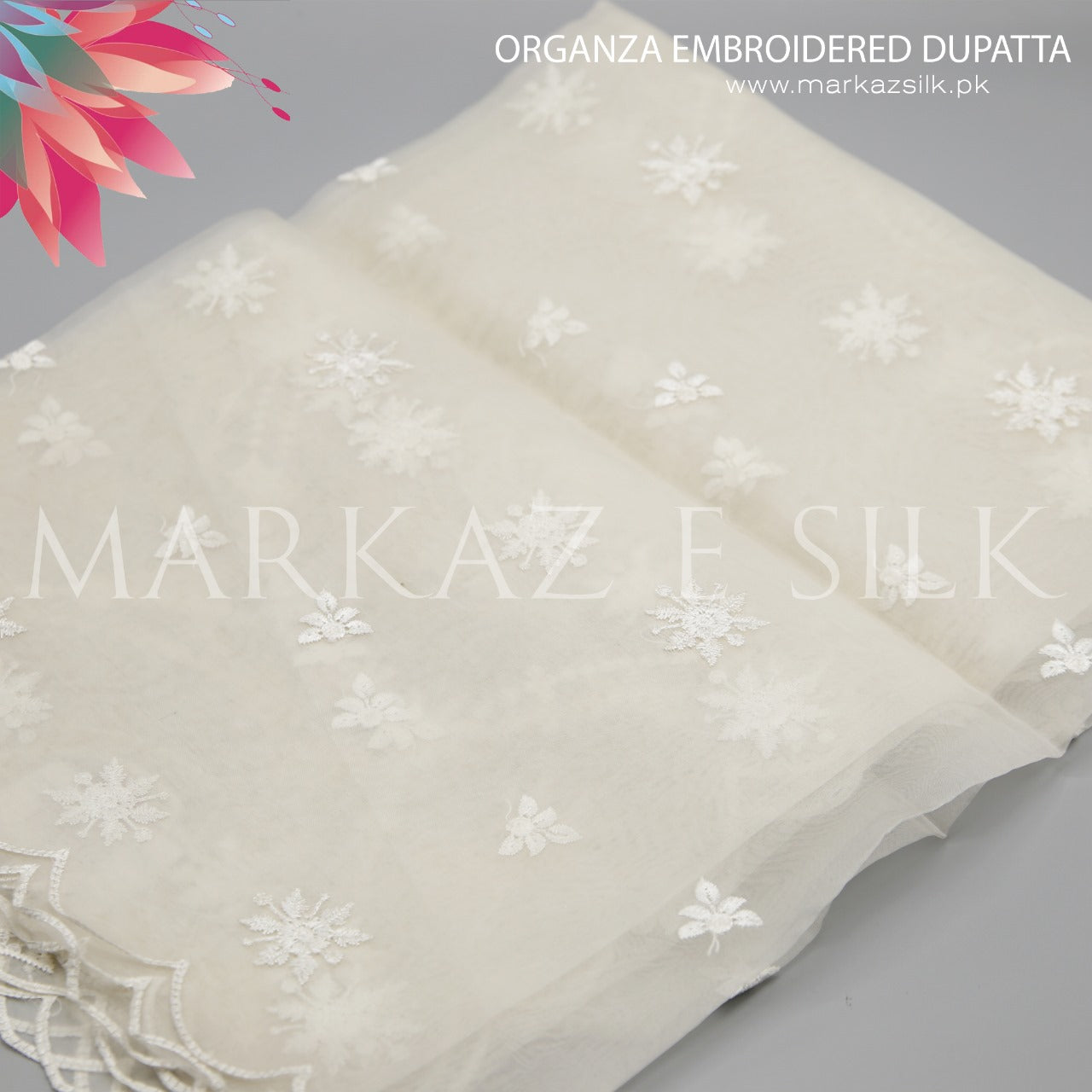 Organza Embroidery Dupatta MS-693 | Luxury Organza Dupatta | Markaz Silk